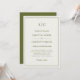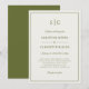 Celebre o seu amor com este convite de casamento luminoso, apresentando uma frente creme quente e um verso verde-oliva rústico e rico. A tipografia refinada em verde-oliva cria um visual harmonioso e minimalista, ancorado por um monograma moderno e combinações de fontes elegantes em todo o convite. Os nomes do casal são lindamente destacados em itálico, separados por linhas divisórias graciosas e um “e” comercial distinto.