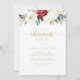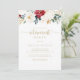 Este clássico convite de festas de reforma floral de ouro é perfeito para um evento rústico. A design apresenta a cor-de-água, flores brancas, borrifadas e douradas e bagas com folhagem verde dispostas em buquês elegantes.