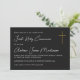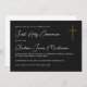 Este convite mínimo e elegante da Primeira Comunhão apresenta uma simples escrita de cor dourada em cruz e caligrafia branca em fundo preto. Personalize o nome e inclua detalhes importantes para esta bela ocasião religiosa.