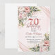 Celebre um 70º aniversário memorável com este convite elegante com rosas douradas em aquarela, flores rosa empoeirado e rosa velho, folhagens suaves e uma moldura dourada brilhante. Impresso com a qualidade premium da Zazzle para cores ricas e detalhes nítidos, este design floral boho cria um convite lindo e elegante, perfeito para homenagear uma celebração de um marco tão especial. 🎉
