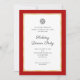 Este convite para festas corporativas oferece um layout profissional de na moda com borda vermelha e dourada. Um pequeno gráfico de coroa acentua o topo do convite. Personalize este convite de festas de Janto de Natal de negócios com os detalhes do evento.