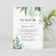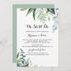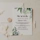 Este típico tropical verde que ainda fazemos é o convite para renovação de votos perfeito para uma cerimônia e celebração modernas de renovação de votos. A design apresenta predominantemente folhas tropicais verdes com flores bem arrumadas.