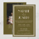 This wedding invitation is perfect for your wedding if you are looking for an elegant unique and easy editable scannable invitation .An elegant unique luxurious grassland green and ivory QR code image wedding template invitation. as you see it features plain green background. And classy Parisian font in ivory old money bright bride's and groom's first names and script info. With bride and groom s names on the back with a scannable QR code and customizable photo. It is Affordable and it is also digital electronic e-invitation if you want to send it by text or email. All the info are customizable by clicking on the personalize button. So Grab it and make it yours so you make you invites engaged and excited .