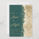 Classy luxury gold sparkle glitter Wedding invitation. Set against a deep green background,
