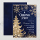 Classy Navy Gold Glitter Red Pine Christmas Corporate Party Invitation