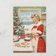Numa cozinha confortável e coberta de neve, a Sra. Claus é capturada no meio de assar de férias. Vestida com um vestido vermelho festivo com capas aparadas de pele, e um avental correspondente, ela sorri muito bem enquanto prepara um novo lote de biscoitos. A cena é cheia de alegria natalícia, completa com uma árvore maravilhosamente decorada, enfeitada com canas doces e ornamentos vermelhos, enquanto a neve suavemente cai fora da janela, adicionando à atmosfera mágica da estação.