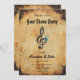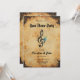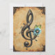 Linho mecânico e flores até a batida dos relógios. Uma clave de triplo estilo steampunk, renderizada em metal escuro com sotaques de bronze e detalhamento intrincado. A clave é enfeitada com flores azuis que têm rostos de relógio em seus centros, acrescentando um toque caprichoso. As notas musicais flutuam perto da clave, e pequenas gotículas pendem das curvas.