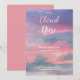 These girl baby shower Invitations feature a We're on Cloud 9 design theme. Pink, purple blue ethereal watercolor sky with pink, white color typography. Image copyright Marg Seregelyi Photography.