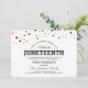 Celebre o feriado do dia 12! Esses convites têm uma design mínima, mas significativa, de dezenove temas. No topo está um aglomerado de estrelas representativo dos Estados Unidos. Em vez disso, essas estrelas estão em um esquema de cores vermelho, preto, amarelo e verde. Todos os elementos deste item são desbloqueados e personalizáveis, incluindo a cor sólida do marinho profundo do plano de fundo. Com isso em mente, divirta-se sendo criativo e fazer seu.