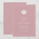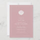 Elegant baptism invitation design featuring a hand-painted pink and white shell on a dusty pink background. Subtle stripes add depth, while the mix of sans-serif and decorative serif typography creates a timeless, coastal feel—perfect for classic, minimalist, seaside-inspired baptisms. The shell represents an old baptism symbol that was used to pour the water.