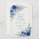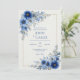 Invite your guests to a celebration of pure elegance with this striking botanical composition. The design is anchored by lush corner arrangements of cobalt blue bloom and delicate azure petal clusters, each meticulously detailed with fine, shimmering gold veins. A minimalist gold line frame provides a modern, sophisticated focal point against a clean, white textured background that mimics high-end artisanal paper. Graceful sprays of blue leaf sprig and buds trail elegantly from the corners, adding organic movement and grace. This wedding invitation is an exquisite choice for a seaside ceremony, a chic winter celebration, or a sophisticated garden-themed event. It ensures your event details are presented with a sense of high-end clarity and natural beauty from the moment guests open the envelope.
