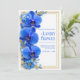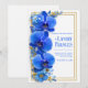 Welcome your guests to a celebration of bold elegance with this striking botanical masterpiece. The design features a stunning vertical trio of vibrant cobalt blue orchids, each petal meticulously detailed with deep sapphire veining and delicate golden highlights. Shimmering gold sprigs and smaller azure blossoms accent the lush arrangement, all framed by a sophisticated double-line gold border. Set against a clean, textured white background, this composition offers a high-contrast, luxurious aesthetic that is both modern and refined. This is a premier choice for a royal blue and gold wedding, a sophisticated beachfront ceremony, or an elegant formal reception. Its bold jewel tones make it a stunning match for upscale gallery venues, modern city hotels, or classic ballroom celebrations where a high-contrast botanical aesthetic takes center stage. Whether you are hosting a summer garden event or a grand evening gala, these vibrant orchids set a tone of prestige and artistic sophistication for your special day.