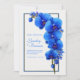 Welcome your guests to a celebration of bold elegance with this striking botanical masterpiece. The design features a lush vertical cascade of vibrant cobalt blue orchids, each petal meticulously rendered with deep sapphire veining and delicate golden highlights. Smaller azure buds and elegant green stems lean gracefully into a double-line frame consisting of a shimmering gold inner border and a solid navy blue outer border. Set against a crisp, textured white background, this composition offers a high-contrast, luxurious aesthetic that feels both modern and refined. This is a wedding invitation. It is the premier choice for a high-contrast royal blue and gold wedding, a sophisticated nautical ceremony, or an elegant black-tie gala. Its bold jewel tones make it a stunning match for upscale lakeside venues, modern art galleries, or formal ballroom receptions where a "Royal Blue and Gold" color palette takes center stage. Whether you are hosting a summer waterfront event or a grand winter celebration, these stunning orchids set a tone of prestige and artistic sophistication for your special day.