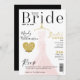 Anuncie seu evento de chá de panela com nosso elegante convite para a noiva a ser da revista chá de panela e da revista de na moda de tendências. O chá de panela foi projetado para se parecer com uma na moda e uma revista de noiva glamourosa. A imagem da revista chá de panela apresenta o nosso vestido de noiva branco, elegante e moderno, branco e pálido, rosa, pintado à mão. O vestido de noiva está pendurado num cabide do estilo vintage do ornamentado. Os detalhes do local de flores suaves e faíscas no vestido de noiva criam um belo, sofisticado e luxuoso olhar. A cabeça-forte da revista "A Noiva" cria o nome da revista. O texto do chá de panela foi projetado para parecer um texto que você veria em uma revista. Todas as ilustrações são obras de arte originais desenhadas à mão por Moodthology Papery.