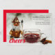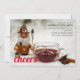 Convide os amigos para uma festa de coquetel quente de férias com nosso convite para festas divertidas e festivas. Design apresenta uma foto de fundo de um maravilhoso gnomo de inverno olhando para uma caneca de vinho enrolado emparelhado com bastões de canela e anis estrelado, e "aplausos" em uma imagem ousada e escrita. Adicione os detalhes da sua festa em letras pretas correspondentes.