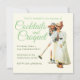 Cocktails and croquet invitation with vintage picture and green script