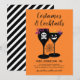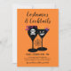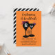 Os convites para na moda definem o tom para uma fantasia de Halloween adulta e festa de cocktail! O convite apresenta vinho negro e óculos martini com ossos brancos crânio-e-cruzados e designs de estêncil jack o'lantern, cheios de misturas tóxicas, e acentuados com detalhes assustadores de cobra, aranha e teia aranha. A cor de fundo laranja pode ser personalizada. A parte traseira da placa apresenta um padrão moderno de faixas diagonais preto e branco.