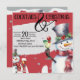 Dois bonitinhos de neve segurando coquetéis de Natal e feriados aparecem na frente do cartão com fundo vermelho. As informações de convite são exibidas na frente da placa e são totalmente personalizáveis. Neves estão vestindo chapéus nobres e bagas de inverno com lenços de xadrez vermelha e branca. Cada boneco de neve tem uma leve mancha nas bochechas e está pronto para convidar seus amigos, colegas de trabalho, vizinhos e família para sua festa de inverno. A placa inversa tem um solteiro de neve contra fundo vermelho com deriva de neve.