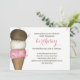 Este design apresenta um aniversário de sorvete de aquarela fofo, um roteiro de caligrafia na moda, um site de código QR online, uma divertida comemoração branca festiva, um cone de waffle do sorvete, um design mínimo simples, um aniversário mínimo minimalista, uma festa de verão, um castanho branco rosa, um sorvete de sabor napolitano