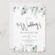 Simples casamento botânico elegante, tudo em um convite. Convite de casamento moderno minimalista que apresenta cor d'água pintada manualmente com eucalipto verde com detalhes e código QR RSVP no verso. Você pode personalizar o texto, o estilo da fonte, a cor e o tamanho em frente e atrás do convite. Por favor, foi livre de me contactar para encontrar itens correspondentes.