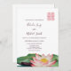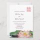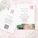 Este convite floral apresenta uma pintura de aquarela de uma flor de lótus e um símbolo de felicidade dupla num tom cor-de-rosa correspondente num fundo branco. No verso está um código qr digitalizável para o seu site de casamento.