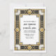 Celebre com um glamour atemporal dos anos 20 com este convite de casamento Art Déco preto e dourado, apresentando moldura geométrica ousada e tipografia elegante inspirada no vintage. Os impressionantes detalhes dourados contra um fundo preto profundo criam uma estética luxuosa de Grande Gatsby, perfeita para casamentos modernos, formais e de gala.