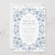 Convide seus entes queridos para comemorar com um toque de romance e arte. Este chá de panela personalizado apresenta um quadro floral azul empoeirado desenhado à mão num estilo romântico de arte folclórica, delicado, intrincado e simplesmente lindo. O fundo branco suave permite que os florais floresçam e adiciona um ar de elegância que sente tanto eterno quanto quente, fazer que é um ajustado perfeito para tudo, desde festas de jardim do quintal até reuniões elegantes no interior. Adicione uma reviravolta moderna com o código de QR personalizável no verso, perfeito para vincular ao seu site de casamento, registro de presentes ou formulário de RSVP, fornecendo aos convidados todos os detalhes na ponta dos dedos. Esta design não é apenas bonita, é também incrivelmente fácil de personalizar. Edite o convite on-line com os detalhes do evento em minutos, diretamente do navegador. Quer combinar com o seu tema? Você pode até ajustar a cor de fundo ou ajustar a matiz floral para criar uma aparência perfeitamente coordenada. Você tem a flexibilidade de escolher o que funciona melhor para o seu planejamento de eventos: convites impressos profissionalmente em papel luxuoso, perfeito para enviar como keepsakes queridas ou fazer o download instantâneo de um arquivo digital de alta resolução para compartilhamento rápido e fácil via e-mail ou texto, ideal para planos de última hora ou eventos ecológicos. Moderno, elegante, e exclusivamente seu, este convite é uma maneira adorável de dar o tom para o dia especial. Comece a personalizar agora e crie um convite para chás de panela que se sinta correto.