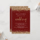 Convites Código QR Brilho Dourado Moderno Casamento Borgonh