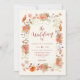 Convite de casamento floral boho elegante com código QR com script elegante em laranja queimado e apresentando belas flores silvestres pintadas à mão em aquarela dispostas em um design de arco. Modelos fáceis de usar para adicionar todos os detalhes essenciais do seu dia de casamento e um gerador de código QR de site de casamento ideal para RSVP online para seus convidados. Lindas flores em aquarela perfeitas para casamentos de primavera, verão ou outono em paleta de cores laranja queimado, terracota, marrom, laranja, roxo amarelo, rosa e verde e funciona muito bem para um tema de casamento em tons terrosos. Arte original da artista Catherine Sweetman
