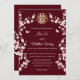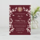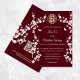 Este convite para o casamento chinês moderno mostra galhos cor-de-rosa poeirentos, duas borboletas e um símbolo de dupla felicidade dourada num fundo tinto de vinho escuro. Com um código de QR digitalizável na parte de trás. É perfeito para um casamento de fusão asiática, um casamento que combina elementos de diferentes culturas asiáticas, as flores de cereja japonesas, o símbolo chinês de dupla felicidade e o rosa-rosa-índio, ouro e mauve.