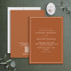 Um convite formal clássico de casamento Burnt Orange, com caligrafia de script. Perfeito para a noiva moderna ter um caso formal. Economize o custo no papel de carta do gabinete com nosso Código QR incluído na parte traseira do convite para detalhes de RSVP e Casamento. Consulte a coleção de cheios aqui: https://www.zazzle.com/collections/elegant_burnt_orange_classic_script_wedding-119586740302574987 Copyright Anastasia Surridge for Elegant Invites, todos os direitos reservados.