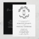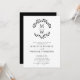 Tudo em um código QR RSVP Clássico, preto e branco Monograma, Convite de Casamento Botânico de Ferida Botânica... A frente do nosso convite de casamento minimalista apresenta uma coroa de folhas botânica mostrando as iniciais do monograma da noiva e do noivo acima do texto de convite personalizado em serif negra e sans serif tipografia em fundo branco nítido. A parte preta clássica do convite também exibe o código QR do seu site de casamento, assim como o próprio URL do site, permitindo que seus convidados facilmente RSVP on-line e visualizem todos os detalhes normalmente enviados em um pacote de casamento. O exemplo de código QR e todo texto de exemplo podem ser facilmente revisados com suas próprias informações sobre o modelo de personalização.