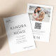 Tendência elegante noiva e noiva mínima e nomes de noivo script de tipografia na moda orçamento barato convite personalizado de casamento em preto e branco simples com noiva de monograma tipografia e nomes de noivos e código QR para o site. +++++++++++++++++++++ O convite é adequado para primavera, verão, outono ou cerimônias e recepções de casamento clássicas e neutras no inverno.