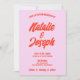 Este convite para o casamento é perfeito para o seu casamento se você estiver procurando um design único e fácil de ser editado. Um simples e elegante convite de modelo de casamento roxo e minimalista. Que apresenta um plano de fundo cor-de-rosa comum. E os primeiros nomes da noiva e do noivo laranja ousado dos anos 70. e informações editáveis com as iniciais da noiva e do noivo no verso e código QR personalizável para que seus convites pudessem RSVP online. Barato e é também um e-convite eletrônico digital se você quiser enviá-lo por texto ou email. Todas as informações são personalizáveis clicando no botão personalizar. Então pegue-o e faça-o seu para que você faça você convidar noivos e excitados.