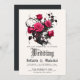 Convoca seus convidados de casamento com este maravilhoso convite de casamento Gótico Medieval com um buquê rústico de rosas coloridos de cereja e folhagem preta, além de todos os outros. o dorso é preto com um Código QR, Caligrafia Renascentista Inglesa Antiga - Criada por ©WhimsicalArtwork™ Isto é parte de um pacote completo de artigos de casamento