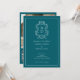 Estes convites de foto com código QR para festa de noivado elegantes e modernos apresentam um design de texto minimalista branco e azul Conto, com uma moldura clássica na borda. Adicione suas iniciais ou monograma para torná-los completamente seus.