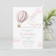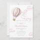 Este convite de chá de bebê encantador apresenta um lindo balão de ar quente rosa e nuvens, juntamente com uma tipografia elegante. Com o código QR do seu registro e foto especial no verso. Criado por Thisisnotme©