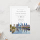 Este convite de casamento elegante com a paisagem urbana de Filadélfia em aquarela pode ser personalizado com suas informações em tipografia sofisticada com o código QR do seu site de casamento no verso. Projetado por Thisisnotme©