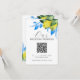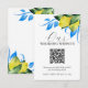 Economize em papel e dinheiro com esta placa de cor d'água botânica rsvp com código QR. Um design simples, mas elegante, este cartão de resposta do casamento apresenta limões aquarelas com embelezamentos azuis. Adicione sua personalização à caligrafia e à tipografia serif. Para mais convites de casamento, visite www.zazzle.com/dotellabelle Art e design de Victoria Grigaliunas