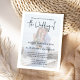 Esta design apresenta uma fotografia minimalista moderna, código QR rsvp através do website, digital digitalizável online, texto elegante de cinza escura, cobertura branca de casal com fotografia de noivado, uma tradicional camada simples e romântica de tipografia caligráfica, estilo vellum com cobertura chic, um moderno e simples romântico de elegância rustica, com detalhes de casamento mais informações