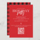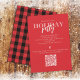 Esta design apresenta uma festa de Natal simples, rústica, fazenda de fazenda ao norte, xadrez mínima minimalista de búfalos, vermelho e preto, férias de Natal se juntam, letra moderna do roteiro de caligrafia, com estilo de texto da tipografia na moda, uma celebração elegante e simplista do país, convites para festas de Natal, um simples convite básico para festas limpas com código QR para convidar seu convidado para a página de mídia social, junto com um ícone no Facebook
