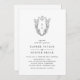 Este simples convite de casamento de monograma preto e branco do código QR da Coleção Daphne é perfeito para um casamento tradicional. O simples, porém clássico, design apresenta um elegante e eterno monograma da crista com flores e verde em torno das iniciais do casal. Salve o papel, incluindo um código QR para seu convidado para ver detalhes, RSVP ou ambos.