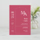 Este convite apresenta uma design minimalista simples e elegante fonte de tipografia com fundo viva magenta juntamente com um título de forma de arco e foto e código QR. A simplicidade e a design limpa deste convite funciona bem com todos os temas de casamento e definitivamente uma adição excelente ao seu casamento. Basta personalizar os nomes e o texto em alguns passos fáceis e personalizar o cartão de convite com sua foto do casal feliz e substituir o Código QR pelo seu no verso do convite para dar um toque pessoal agradável ao seu convite. Por favor, note: a forma de arco de "Junto com suas famílias" e as frases "Recepção a seguir" na frente E "Detalhes e RSVP" na parte de trás, juntamente com as linhas na frente e no verso e outros elementos gráficos de trabalho de arte não podem ser editados, movidos ou excluídos. Eles são fixos. Se precisar alterar a cor, você pode personalizar o cartão de convite. Você pode personalizar e personalizar o convite para ajustado das suas necessidades de evento de casamento e clicar em personalizar o convite. Você pode personalizar facilmente o convite com o texto como um download digital e enviá-lo eletronicamente e compartilhá-lo com seus convidados através de mensagem de texto, email ou mídia social. Ou também pode optar por enviar/postar o convite relativo aos seus detalhes aos seus convidados. Ou você pode receber ambos — convite impresso e receber o convite em formato digital como um download instantâneo.