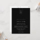 Este convite apresenta uma design minimalista simples e tipográfica, com fundo preto e com um arco geométrico, monograma, fotografia e QR Code. A simplicidade e a design limpa deste convite funciona bem com todos os temas de casamento e definitivamente uma adição excelente ao seu casamento. Basta personalizar os nomes e o texto em alguns passos fáceis e personalizar o cartão de convite com sua foto do casal feliz e substituir o Código QR pelo seu no verso do convite para dar um toque pessoal agradável ao seu convite. Note que a expressão "Detalhes+RSVP" e a forma de arco geométrico que rodeia o monograma na frente e no verso, juntamente com as linhas e outros elementos gráficos de trabalho de arte, não podem ser editadas, movidas ou eliminadas. São corrigidas. Se precisar alterar a cor, você pode personalizar o cartão de convite. Você pode personalizar e personalizar o convite para ajustado das suas necessidades de evento de casamento e clicar em personalizar o convite. Você pode personalizar facilmente o convite com o texto como um download digital e enviá-lo eletronicamente e compartilhá-lo com seus convidados através de mensagem de texto, email ou mídia social. Ou também pode optar por enviar/postar o convite relativo aos seus detalhes aos seus convidados. Ou você pode receber ambos — convite impresso e receber o convite em formato digital como um download instantâneo.