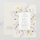 Celebre a sua história de amor com este convite de casamento botânico de flores silvestres românticas, projetado para casais que adoram a beleza natural e a simplicidade atemporal. Delicadas flores em aquarela florescem graciosamente em torno de um layout suave, leve e arejado, evocando o charme de um prado ensolarado em plena floração. A parte traseira do convite tem um código QR para incluir o site do seu casamento e fornecer detalhes adicionais sobre o seu casamento e simplificar as respostas dos seus convidados. Eles podem ler o código QR para enviar suas respostas. Perfeito para casamentos em jardins, cerimônias ao ar livre, locais no campo e celebrações de primavera ou verão, este convite combina flores orgânicas com tipografia clássica para um visual que é ao mesmo tempo fresco e duradouro. O fundo marfim com moldura branca inserida é ideal para casais que buscam uma estética elevada, porém sem esforço; este design estabelece um tom romântico e despreocupado com o qual os seus convidados se apaixonarão desde o momento em que abrirem o envelope. Personalize com os detalhes do seu casamento para criar um convite personalizado que