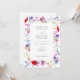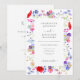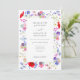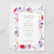 Convite de casamento em aquarela de flores silvestres coloridas boho chic com código QR e tipografia cinza elegante e código QR de RSVP e detalhes do site do casamento no verso do convite. Arte country chic floral de prado de primavera e verão inclui papoula vermelha ardente com cores pastéis de centáureas azuis e roxas, miosótis azuis e rosados e cosmos e folhagem verde delicada. Arte original da artista Catherine Sweetman