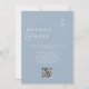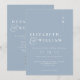 Este convite de casamento com monograma minimalista em azul poeirento pode ser personalizado com suas informações e código QR do site de casamento em tipografia moderna. Criado por Thisisnotme©