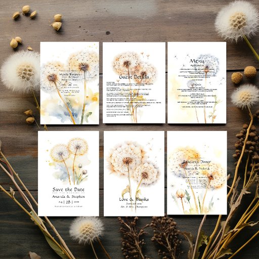 Convite de casamento Dandelion. Ideal para qualquer tema ou casamento de jardim. O código QR no verso direciona para o seu local de casamento onde o pessoas pode aprender mais e rsvp