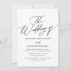 Convide amigos e família para compartilhar a alegria do seu casamento com este convite moderno, com um roteiro elegante e design preto e branco minimalista. Economize nos custos adicionando seus detalhes de casamento no fundo.