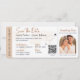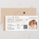 Convite de código QR de casamento de destino de embarque. Boho Neutral Beige Embarcar passe convite para o casamento com um mapa de destino mundial, Passe de Casamento, Casamento de Destino, Passaporte com código QR Rsvp.